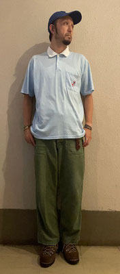 センスを感じる、淡い<col:SAX BLUE>の”色出し”や、触ればと解る、<ALL COTTON 100%(天竺素材)>の、質の高さ等、流石!、と思わせてくれる、素晴らしき『POLO SHIRT』、個人的には、『CLELIC SHIRT』の様な、白色の”COLLAR(襟)”と、胸ポケットに施された、”ANCHOR EMBROIDERY”が、お気に入りポイント!、シンプルに、『CHINO、MILITARY PANTS』に合わせたい、とイメージが湧きましたから!!